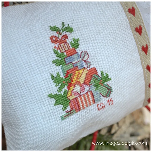 per abbellirla ho ricamato delle foglie di agrifoglio in miniatura